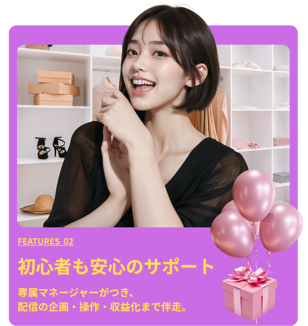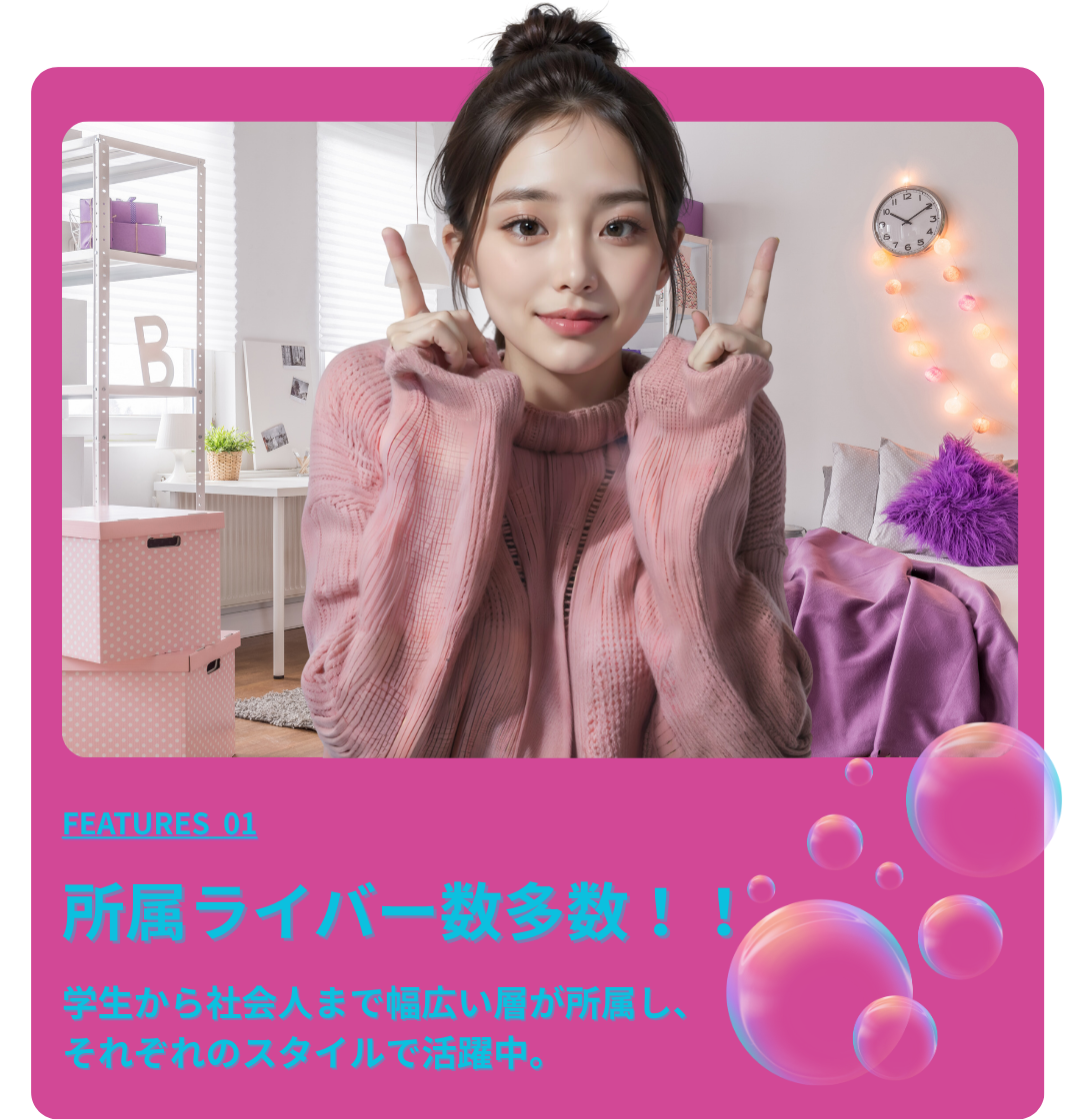 「配信の先で夢を叶える」をコンセプトに、初心者からトップライバーまで、あなたの配信活動を全力でサポートします。